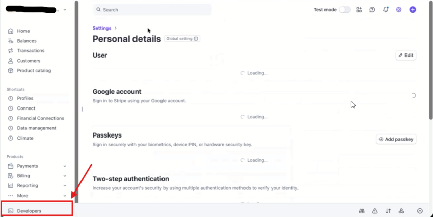 1. Login into your stripe account