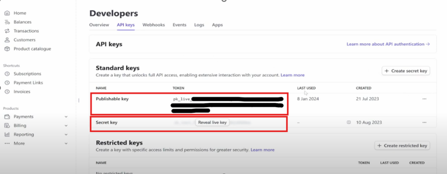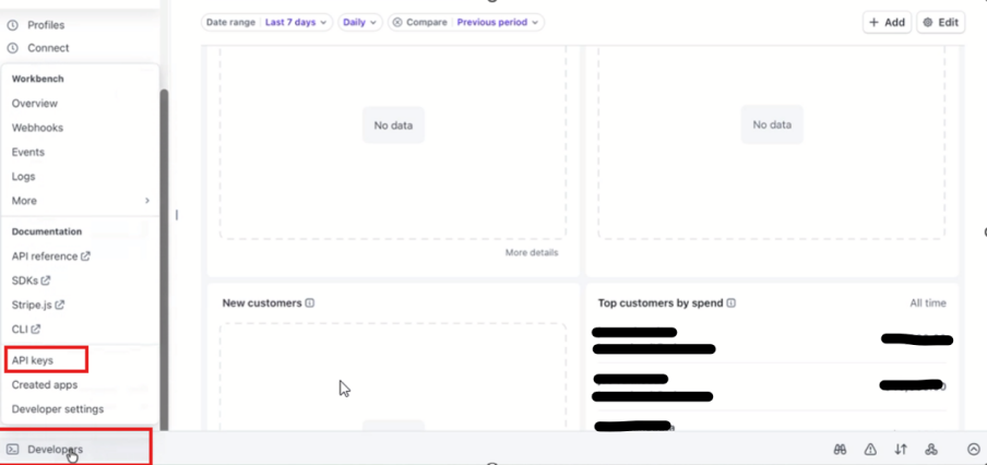 9. Then again go to home page – DEVELOPERS – API KEYS OPTION: