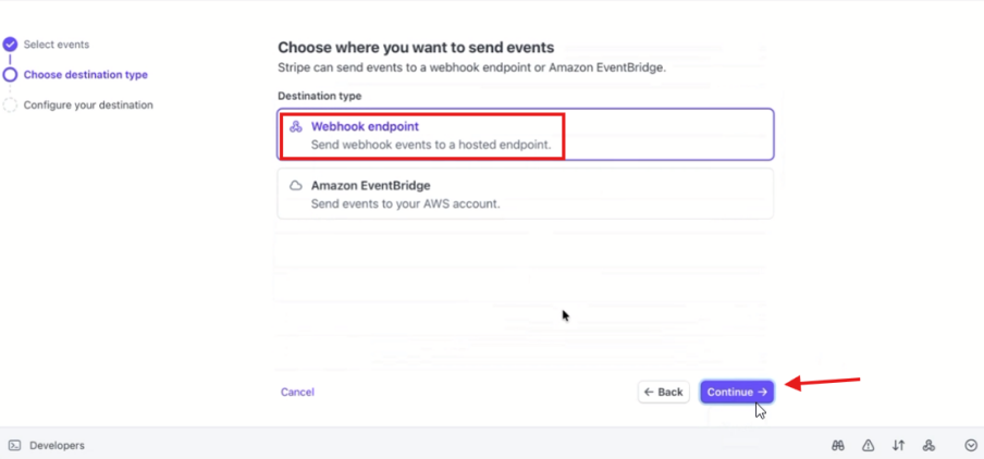 7. Select Webhook endpoint – continue